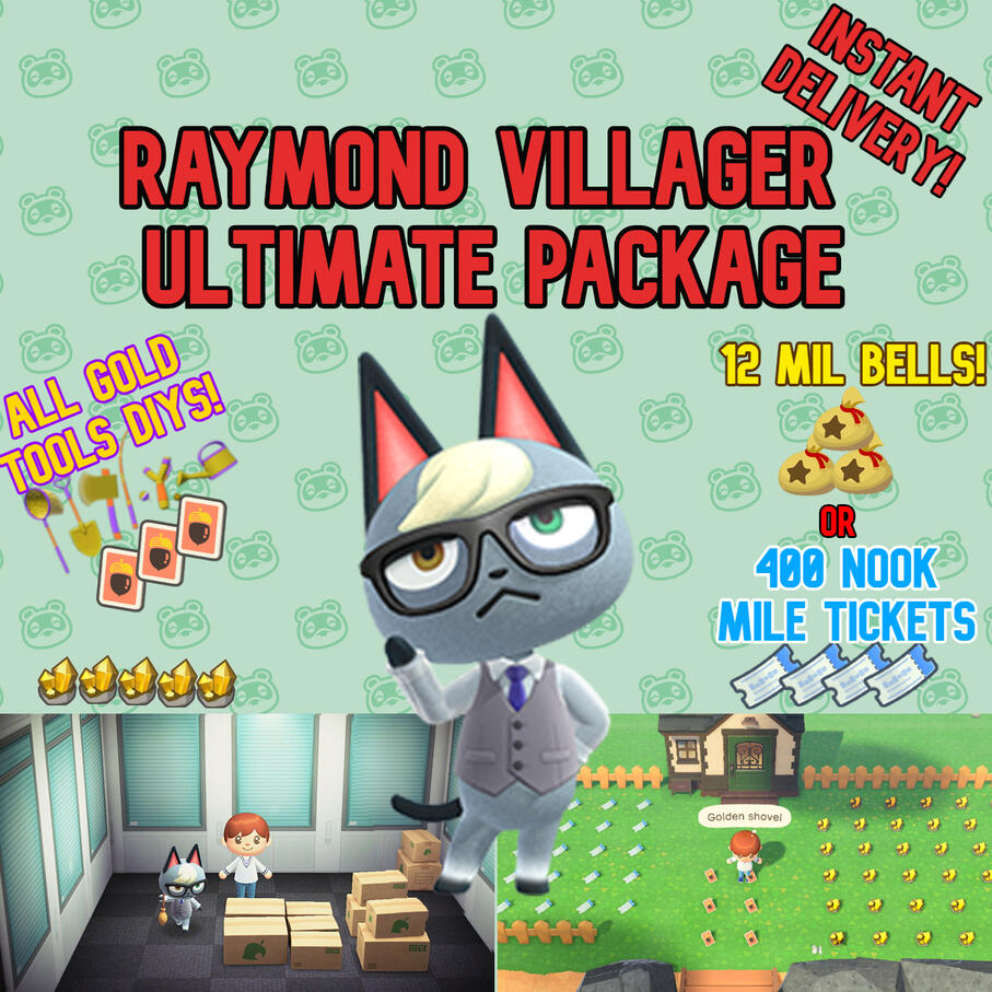 ♡ Special Package: RAYMOND Villager + 12 MIL BELLS or 400 TICKETS + all 5 Golden TOOL DIYS! 12.99$