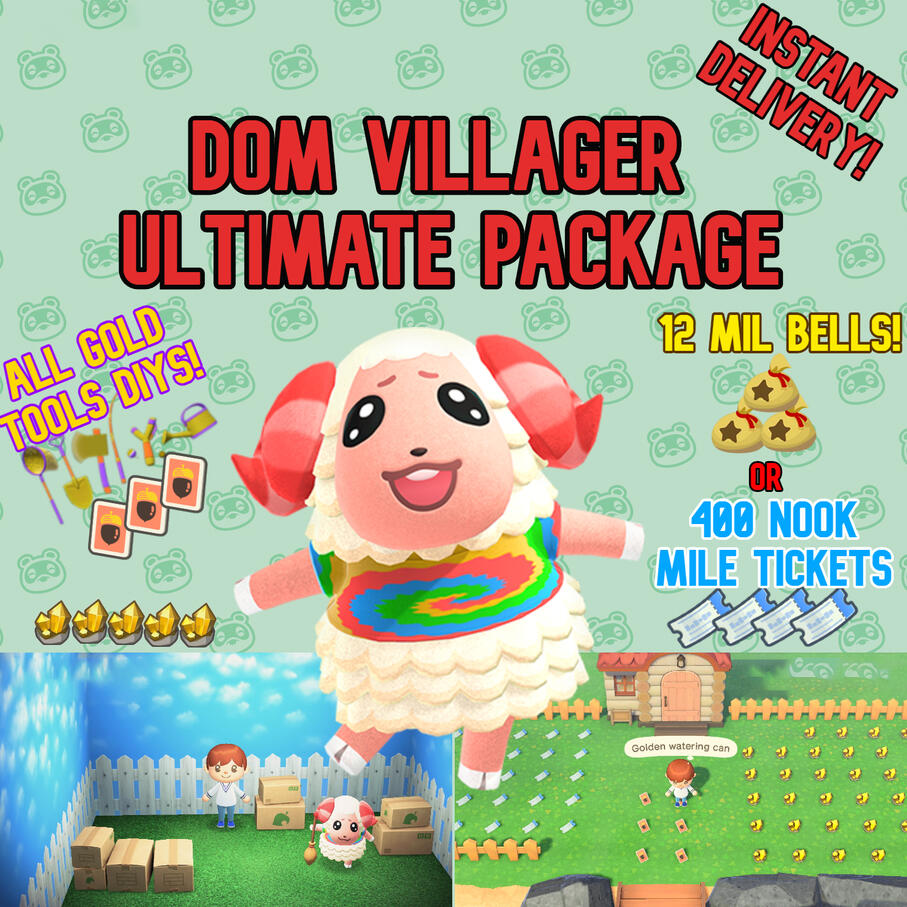 ♡ Special Package: Dom Villager + 12 MIL BELLS or 400 TICKETS + all 5 Golden TOOL DIYS! 12.99$